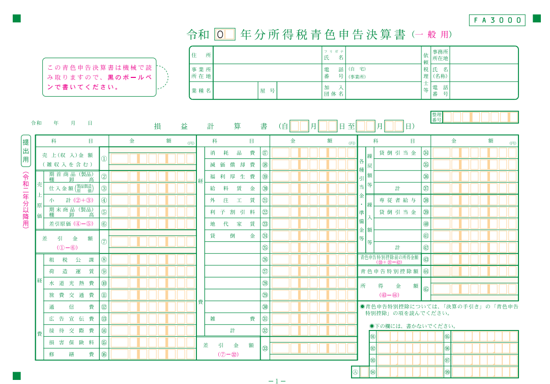 ❌ 赤と黒の印刷で構成された申告書(労災保険用)は基本的に不要です。